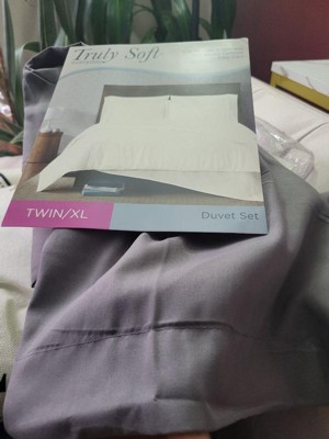 [This review was collected as part of a promotion.] The name of this duvet set says it all! It's called "Truly soft" and it IS truly soft! It feels super luxurious and comes with a twin XL duvet along with a standard sham. I got them for my son's bed and he absolutely loved it! The color is a perfect neutral gray that goes with everything and it is buttery smooth! It says that it is double brushed for a super soft touch. The down alternative filled comforter is wrinkle resistant for faster drying time. Right out of the package it hardly had any wrinkles and didn't need to be ironed at all! My son and I are super happy with this product!