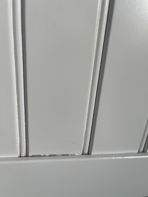 Nice Headboard but the grooves were kinda messy in some places. I was able to scrape them out and use a touch up kit to fix it.
