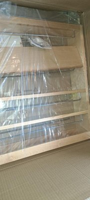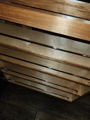 [This review was collected as part of a promotion.] I was so excited to get this beautiful pull out shelf installed in our kitchen! The more organization we have the better! It's very well made and can hold a ton of stuff. It's nice to be able to put all my spices in one place and have them nice and neat. It was very easy to install with clear precise instructions. I love the maple and slightly glossy finish as it fits in well with our color scheme. The one thing I would say is that the shelves are not very easy to adjust because the holes seem too small for the pegs and it's difficult to get them in so I just left the shelves where they were.