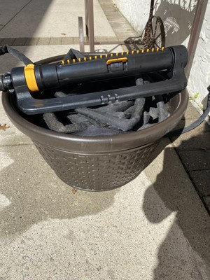 [This review was collected as part of a promotion.] My new Suncast 100 foot resin wicker water hose caddy is SO much better than the tangled mess I was dealing with! Looks much nicer also! The hose fits with room to spare.