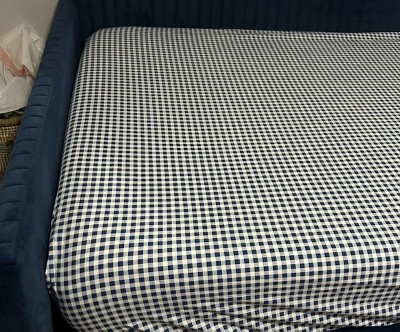 Very cute gingham print sheets. No issues with smell or being too small as mentioned in some reviews. Even after washing they are pretty rough feeling, definitely not soft sheets at all.