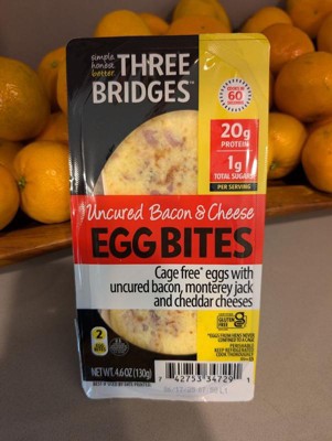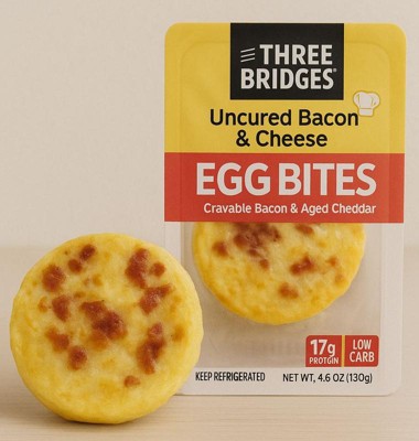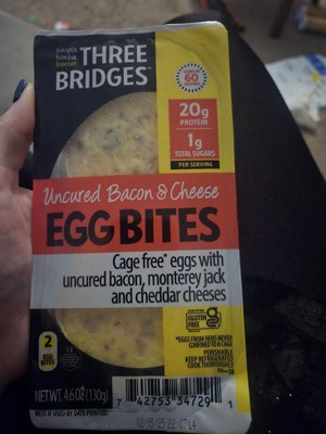 [This review was collected as part of a promotion.] I really enjoyed the Three Bridges Uncured Bacon & Cheese Egg Bites. The egg itself was surprisingly creamy and tasted really fresh, which was a pleasant surprise for something so convenient. It wasn't rubbery at all, but nice and fluffy. The flavor of the egg worked really well with the bacon and cheese. I thought the flavors were well-balanced overall. These are definitely a tasty and quick breakfast option when I'm on the go.