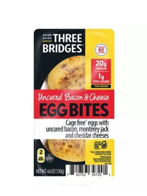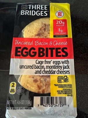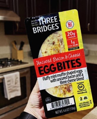 [This review was collected as part of a promotion.] Three Bridges Uncured Bacon & Cheese Egg Bites Gluten Free, They taste very good and the consistency is great, perfect for busy mornings or as a quick snack. With just a minute in the microwave, the packaging is easy to open. Recommended!!