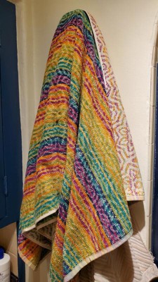 One side of these towels has the low-key subtle colors and pattern shown in the promotional photo. But when you unpack it and hang it up, surprise! You get a candy-colored rainbow towel at no extra cost. Maybe you were expecting both sides to look like the picture, like I did. But this is the back side. Maybe you like it, maybe you don't, but now you know what you are actually getting.