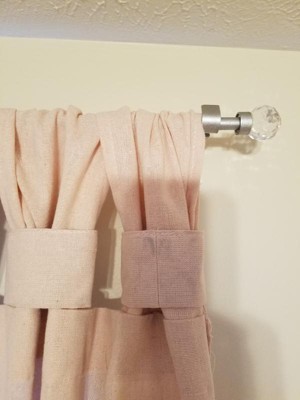 [This review was collected as part of a promotion.] These curtains need some assembly required to create the knotted feature at top of curtains. To create this you must slide rings down curtains loops. These rings are included with curtains. The fabric is nice but when hang up i can see through the fabric. I recieved the curtains in Lt. Grey. Both panels are also included and the package includes measurement of both curtains together which i thought would be helpful. Fabric is a cotton blend wash on gentle in mash bag.