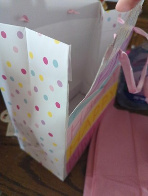 Worst gift bag I've ever seen. Ripped in three places before I even got to the party. Had to tape it up, so it looked used. Never seen such a flimsy bag before.