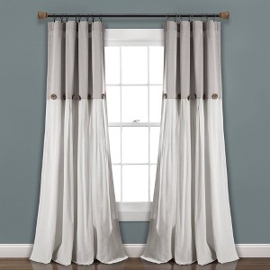 Add the elegance of linen to your home with these farmhouse chic Linen Button Window Curtain Panels. Color blocking is always in style and we love the details of pleats and buttons. Slight weave variations are authentic to this natural fiber blend and create a one-of-a-kind look. This stylish Linen Button Window Curtain Panel will add the perfect amount of flair to your bedroom, living room, dining room, dorm room or even nursery. This Linen Button Window Curtain Panel is available in a large selection of colors, making it easy to match any space. It's available in multiple lengths, including 84 inches, 95 inches and 108 inches. Some colors may not be available in all sizes. No matter which color or length you choose, each panel will measure 40 inches wide. The Linen Button Window Curtain Panel has a 3-inch rod pocket, so it hangs easily. You can slide the curtain rod through the rod pocket, or you can hang the panels from the rod with clip rings, as shown in the photos. They will let in plenty of natural light while providing ample privacy from neighbors and other outsiders. This style is sold by the single panel, so if you need to replace one panel or need an odd number of panels to cover your windows, you won't have to purchase more than you need. However, you will need to purchase two panels to get the look in the photos. Please note: The "white" portion shown in the photos is more of an off-white, natural fiber color. These are not pure white or bleach white. For your convenience, this Linen Button Window Curtain Panel is safe to machine wash and tumble dry. Please read the full care instructions on the label before washing. Part of the Linen Button Collection.