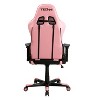 The Techni Sport TS-4300 Ergonomic High Back Computer Racing Gaming Chair will put the pedal to the metal on productivity in any office or game room. Unlike regular office chairs, it gives an eye catching racer style appearance and modern look to spruce up any environment. With the cool resemblance of a sport's car interior, let your imagination "race" as you recline and swivel in superb comfort for gaming or work sessions lasting 8 hours or more. This ultimate computer gaming chair is made with synthetic TechniFlex upholstery and features a height adjustable memory foam seat, reclining back mechanism up to 150 degrees, tilt & tension mechanism control, ergonomic and adjustable headrest and lumbar support cushions, height adjustable and swivel armrests, and a durable color matching 5-star nylon base with color matching dual non-marking 2" casters. 3% of sales go toward causes that support our Veterans. Seat adjusts from 18.25" to 21.75" high. Weight Capacity: 250Lbs. Color: Pink
