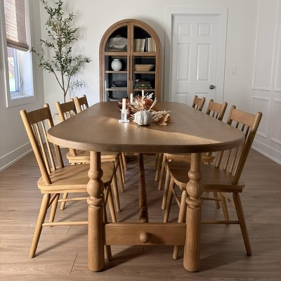 Super impressed by these chairs! They're a true oak color (not too orange or too ashy), very sturdy, and easy to assemble. We've already gotten lots of compliments on them from our family and friends and everyone is pleasantly surprised to learn they're from Target. We have a lot of 6' tall folks in our family, and they've found the chairs very comfortable height-wise as well. Couldn't recommend more!