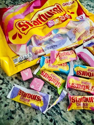 [This review was collected as part of a promotion.] We love starburst! The flavors are delicious- very fruity. They have just the right amount of chewiness. The package size is great for a snack. These are my new go to treat.