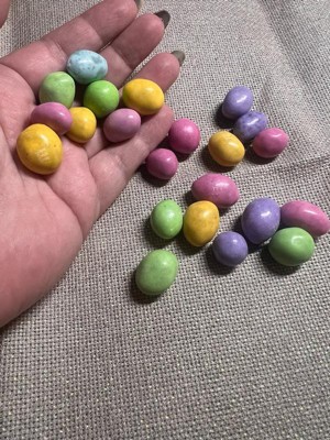 [This review was collected as part of a promotion.] Delicious as always but now in pretty colors . Not all of them look like eggs , some of them are just round and others look more like jelly beans but they are delicious all the same .