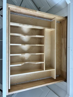 [This review was collected as part of a promotion.] Rev-A-Shelf 4WCT-3 Tall Wood Cutlery 9 Compartment Tray Cabinet Insert, Maple color has helped me organize my cutlery drawn. I now have a space for all my silverware and so much more. I love how sturdy it is and the color goes so well in my kitchen. What a great product!