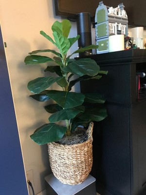 I really love this. Fiddle leaf dig trees are very on trend right now, and I have a live one on my main floor, but wanted this one for upstairs. It’s a good sized plant - a couple of feet tall. Great quality, looks nice. I wouldn’t say it looks real up close, but from a distance it sure does. I also like the basket it is in a lot.