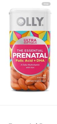 OLLY Ultra Strength Prenatal Multivitamin Softgels with Folic Acid + DHA - 60ct: Vitamin C, 800mg, Unflavored, Gluten-Free