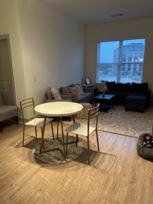 the texture and size are good. I'm going to keep in where I put it until I find something I love. I expected the patterns to be more gradient, but it looks pixelated. hard to explain but imagine the rug was a photo of an abstract image and then instead of a high quality zoom, they just resized it so it became pixelated. One section looks a bit like a blob. Also, lots of bits floated out when we unrolled it. I inhaled some carpet fiber or something. so take care and vacuum after you open it.
