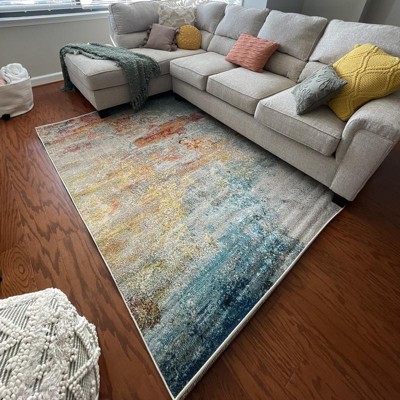 This area rug is so beautiful! It matches everything in my small living room. I love the abstract design and colors. It’s soft too.