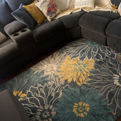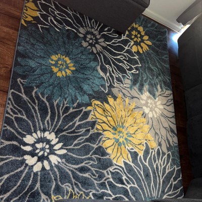 I wanted to replace a red 9 x 12 area rug with a blue one in my living room to align closer with a coastal theme in my home. I also have floral artwork on the walls, so a floral design fits. My first replacement rug purchased was cream with a blue/red design, but that rug smelled and wouldn't lie flat after weeks. It also didn't pop against my light vinyl flooring, so I returned it. I'm happier with the color and design of this navy/ivory rug. It's thicker than my original rug but still benefits from the pad that I bought separately. It feels okay beneath bare feet. I took off one star because it is still a bit creased a few days after unrolling it--I'm hoping it will smooth out eventually. I appreciate the instructions included to smooth out the creases.