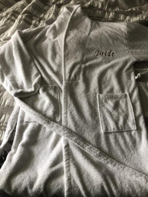 This is the kind of terrycloth robe that actually absorbs some water, like if your hair is wet. It's still soft, though! It's plenty big and long and has big pockets. Super fun for newlyweds, but well-made so that it lasts past the honeymoon lol.