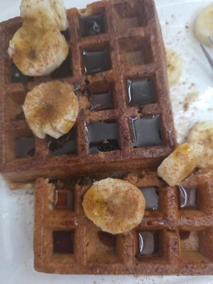 [This review was collected as part of a promotion.] Very convenient protein filled breakfast. We tend not to like the powdery aftertaste with protein but these waffles, were good. Fluffy and delicious.