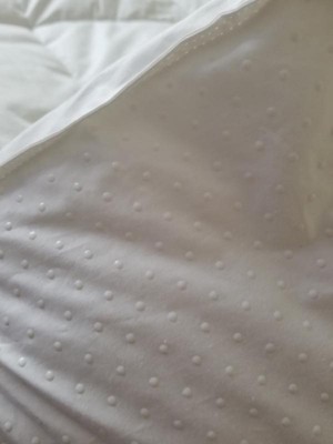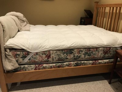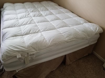 I really wanted to love this - cotton top, the topper is nice and thick, it has baffled construction, elastic bands, not a cheap skirt. But....it's lumpy. So lumpy. The fill is awful - it's so lumpy, and the toipper was filled very unevenely. Iit's not a smooth, even, lofty cloud it's a bunch of lumps. Becuase of the lumpy nature of the fill, the fill stays in the center of each square. I have no idea how anyone can sleep on this thing. One long edge was the worst - too much fill in that row and it was easily an inch highter than the rest of the topper. And harder. Returned it.