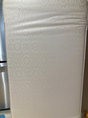 Love this double sided mattress- even better that I can easily tell which side is which and when I should flip thanks to the handy tag! Seems like a little thing, but other mattresses I’ve had that claim to be two sided are impossible to tell apart. Love that this is waterproof- great for night time accidents - especially when night time potty training. The waterproof-ness of it does make it feel a little sterile/medical but with sheets, it’s fine. The pattern is nice. Infant side was actually firmer, which was nice. Overall, good buy that grows with your kiddo and is easy to clean! Mom win.
