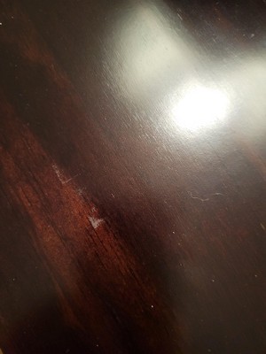 It came with chips in the wood and a big circle of stain that had dropped in front
