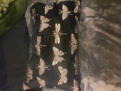 13"x20" Oversize Embroidered Butterflies & Moths Lumbar Pillow Black - Edie@Home: Metallic Detail, Zipper Closure