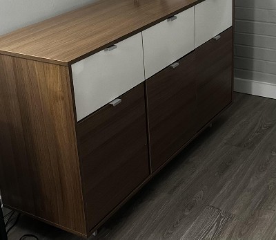 [This review was collected as part of a promotion.] I really like the look of my new sideboard, no that it's fully assembled. It was packed pretty compactly, not one inch of extra space. The styrofoam around it was falling apart, so maybe it took a few hits, but was still well protected. The sideboard came in many pieces that had to be put together, it took me a few hours by myself to do. It is a pretty heavy piece, that looks great. All the drawers and doors function as they should, and the color scheme is modern and clean. I really like the design.