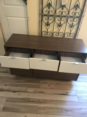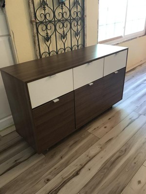 [This review was collected as part of a promotion.] I love the design and color combination, this cabinet looks great in any home. I love how spacious it is and the 6 separate cabinet/drawers help make organizing easy. Assembly took a few hours but was fairly simple to understand.