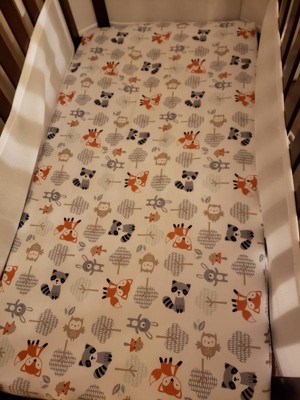 [This review was collected as part of a promotion.] This crib sheet was so adorable with the little raccoon forest animal design. I already had the crib mobile that matched so had to get the sheets. The sheets are thin and cool yet still warm enough for the winter as well. I was pleased as well how secure the sheet was on the mattress with out being ripped off easy.