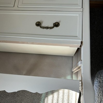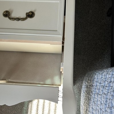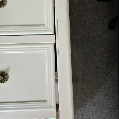 This dresser was a huge disappointment. It was in terrible shape. Cracks, nails pulled out,scratches. Would love to return but of course we had to cut the box to get it out. Very poor condition. Cheaply made