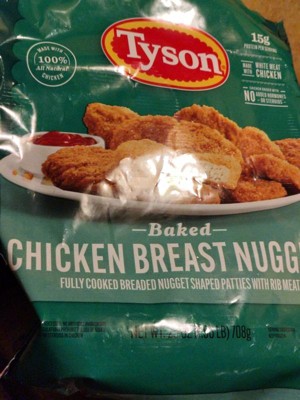 Tyson Baked Chicken Breast Nuggets - Fast,easy to open package.Cooks in air fryer for 10 minutes. Delicious tasting,warm & crispy chicken nuggets.Made with white chicken meat ,no added hormones or steroids. Just the right amount of spicy,juicy flavor,never burned