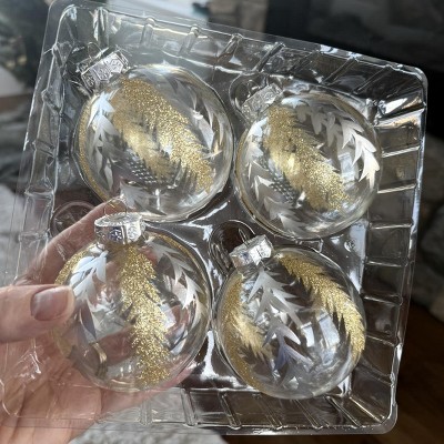 Northlight 4ct Clear and Gold Glitter Leaves Glass Christmas Ball Ornament 3.25" (80mm)