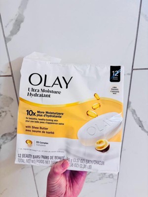 Olay Moisture Outlast Ultra Moisture Shea Butter Beauty Bar Soap with Vitamin B3 Complex - 3.17oz/12ct: Paraben-Free, Aluminum-Free