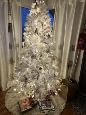 I purchased this white tree bc my beloved Jacklyn Smith white tree purchased in 2018 had yellowed. Although I don’t love this tree as much, it is a formidable replacement. One of the limbs is ever so slightly yellow and hope this is not a hint of what is to come. I am also surprised at the choice to use a green plug for the wall and connectors for the pieces when white could have been so easily manufactured. I remedied that by using some white garland I had. The tree comes pre lit and it well strung. Overall the tree is well built and if the limbs don’t turn yellow will serve me for many Christmases to come. All in all I am happy with this purchase.