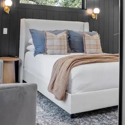 Skyline Furniture King Wingback Bed Mystere Snow: Gentle Curve, Metal Frame, Pine & Polyester Fiber