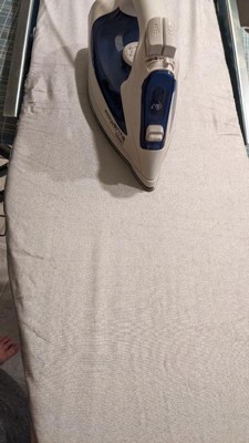 [This review was collected as part of a promotion.] This retractable ironing board piece is heavy!! I wasn’t expecting the frame to be so sturdy, but it is! The actual ironing board does have a slight curve up at the end, but that doesn’t get in the way of using it. Overall this is a solid piece and would recommend!