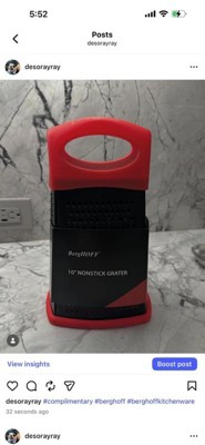 [This review was collected as part of a promotion.] Iam so happy that i received the BergHOFF CooknCo 10" Non-Stick Grater because we love to use queso fresco and i love to shred this cheese for tacos or even soups. Now normally, I use the small grater, but with my carpal tunnel, it's miserable to have to use it and it take frequent breaks. But with the BergHOFF Non-Stick Grater, it has made grating cheese way easier and so much faster! I also like that it has three different sides you can use to slice veggies as well. It will come handy when I make my Calabasa con pollo. One of my favorite parts about this grater is the huge handle. Its rubbery and so easy to hold. And i love the color as well.