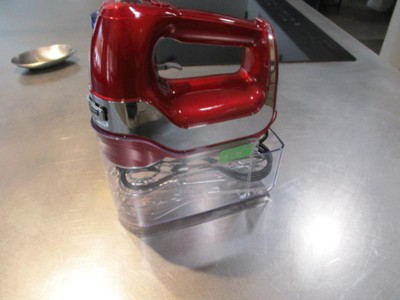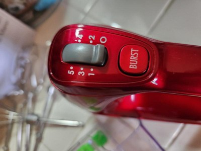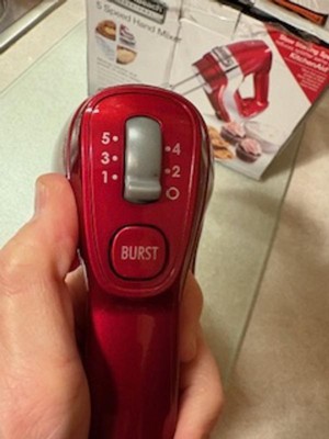 [This review was collected as part of a promotion.] I really like this hand mixer! The Hamilton Beach Professional 5 Speed Hand Mixer did not disappoint. First of all, I liked the appearance of it when I unboxed it--the red color was so much fun! And when I picked it up, I was impressed by the weight of it--it has weight to it, but not too heavy. It feels sturdy in your hand and the weight gives you control as your mixing. It came with a nice instruction booklet that clearly outlined the parts of the mixer in a helpful diagram and also outlined the 5 mixer speeds: stirring, mixing, beating, creaming, and whipping. There's also a 'burst button' that can be pressed during any setting for a burst of power. The mixer came with 2 beaters, 2 dough hooks, and a whisk. Also included was a clear storage container that the accesories sit down in and the mixer slides/clicks into place on top for storage when you're not using it. The first time I used this hand mixer was to beat cheesecake batter for a dessert recipe. It went very well! I mixed for 1 minute on low speed and 3 minutes on medium speed as instructed. This mixer worked very well and my batter was thick and fluffy as it should be. While using it, I especially liked the weight of the mixer (I felt in control) and the sound was suprising: This mixer was not loud and screechy as some mixers I've heard in the past have been. This mixer almost purred like a big cat! I thought, "Wow!" Cleanup was easy--I didn't have too much splatter on the mixer and just wiped it with a wet cloth and rinsed and placed the beaters in the dishwasher. Overall, I found this to be a fantastic hand mixer!