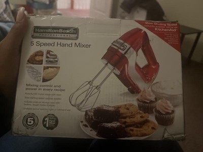 Hamilton Beach Professional 5-Speed Hand Mixer - Red: Kitchen Handheld Mixer, Dishwasher-Safe Parts, 120W, 1-Year Warranty