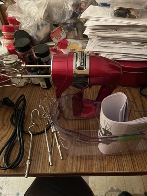 [This review was collected as part of a promotion.] My new kitchen right hand is this Hamilton Beach Professional 62653 5-Speed Electric Hand Mixer with High-Performance DC Motor Slow Start, Snap-On Storage Case, Stainless Steel Beaters & Whisk, Red and Chrome This motor is powerful, affords me effortless handheld mixing. This Professional-grade hand mixer has a lighter motor and ergonomic design. (Makes mixing so much fun, fast, and easy). I found the slow starting speed like Brand KA. prevent splatters with a first speed that's slow enough to mix ingredients without making a mess when baking. Amazing Snap-on storage case with beaters & whisk. Keeps everything in one place no more searching the kitchen for the beater’s blenders. Plus being stainless steel attachments are dishwasher-safe. Powerful 5 speeds with “Quick Burst” at every level perfect for more control at every speed. This swivel cord for right or left-handed use a true saver of drama and mess. Cord adjusts and locks into place to stay out of your way. This “Snap-On Storage Case” for attachments, keeps everything in one place and quick change so you can move from mix to blend in record time. Stainless steel beaters, dough hooks and whisk mix everything from light and airy whipped cream to sticky bread dough.