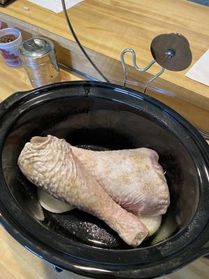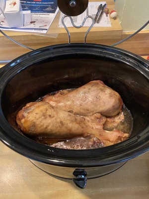 [This review was collected as part of a promotion.] This is the step-up from my “regular” size slow cooker, that I didn’t even know I needed. I’ve had an *enormous* ham in the freezer for a while that I never knew what to do with, because it was too big for my other pot (even with the foil-over-the-top trick) and I’m never up for the time and work it takes to do it in the oven. This beast fit into the 8qt with no problem at all! Looking forward to trying out all kinds of extra large roasts and recipes. The controls are basic (warm, low, high settings on a manual switch) which works just fine for me. I love the lid holder/cord wrap feature too! The answer to two of life’s great mysteries, lol.