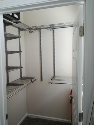 Don't buy the titanium closet configuration, if you want to add more shelves, they don't sell them separately and the white ones won't fit, also the pull out baskets come with these little screws that your suppose to put through the drawer frame and the bracket with nothing to hold it on they just fall out! And nothing on the box or store shelf tells you this, I would never have bought it had I known.