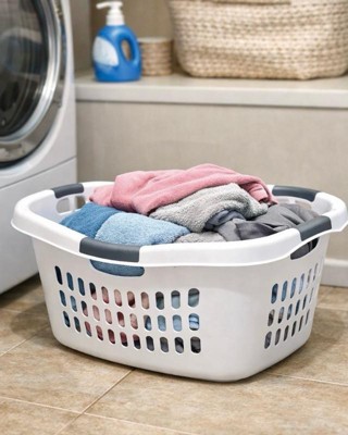 Rubbermaid 2.1 Bushel Large Hip-Hugger Portable Plastic Laundry Basket, White