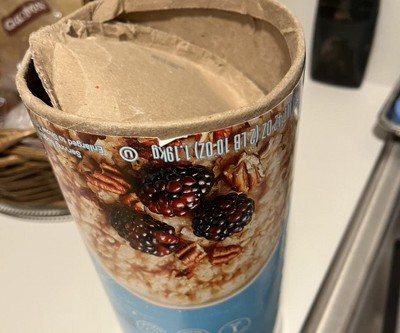 Five stars for the oats, but zero for the lid. The oats themself are fine, but the lid on this package is one of the worst I’ve seen. The plastic pull ring failed immediately, and there’s really nothing to keep the lid in place when you try to reseal the carton and it falls into the container. I don’t want to be picky, but it would be nice to be able to place a cover over my open carton. I will reach for a different brand next time.
