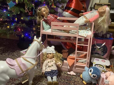 Such a sweet outfit! We got this as a gift to go with our daughter’s new doll for Christmas and she loved it! Very easy to put on and can be worn with the accessories or without. It’s just so cute!