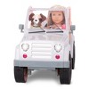 Such an awesome little car! It fits my daughters 18 in doll perfectly as well as her pets in the back. Its super durable and she loves the color. The radio connects via Bluetooth and the lights work too! So awesome!