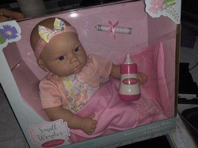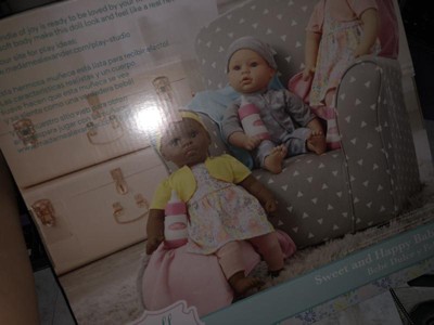my daughter loved this Sweet and Happy baby doll !! She is a very real doll! she adores her, she is learning the pretend game and this doll is perfect for that! he gives her her bottle, dresses her, hugs her, falls asleep with her! What I like the most is that when she burns her, she feels very soft, very real! highly recommended, it is a very good quality doll, its design is impressive!