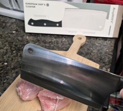 [This review was collected as part of a promotion.] We cook a lot of meat and had been looking for a high quality knife that could help us cut throw bone and soft tissue! This stainless steel cleaver does it all. It’s easy to use, it’s sharp and easy to clean.