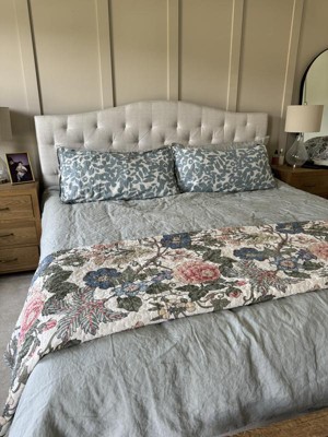 [This review was collected as part of a promotion.] I love this reversible quilt and shams. The floral side is beautiful but the blue and white adds a bit of simplicity to the bed. The quality is great too! Highly recommend. These thoughts are my own, honest and true.